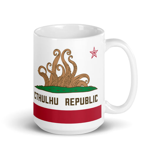Cthulhu Republic California Flag Lovecraft White glossy mug