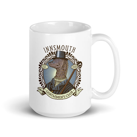Innsmouth Fishing Club Lovecraft White glossy mug