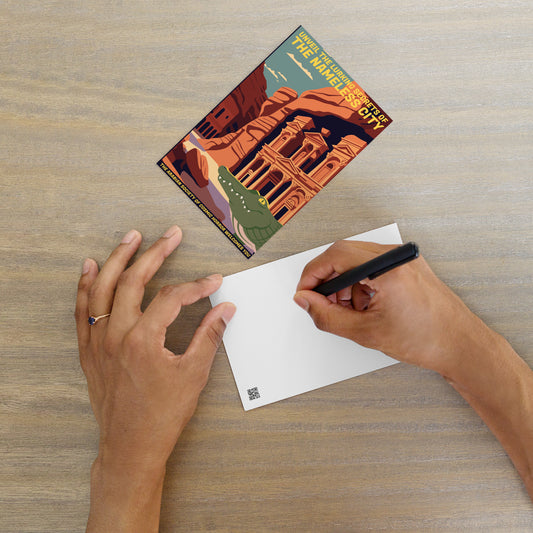 Postcards is a collection that captures distant echoes from forgotten realms and unimaginable places. With Lovecraftian aesthetics and cryptic designs, each card feels like a message from the edge of reality. Send a note—or a warning—from beyond the stars.