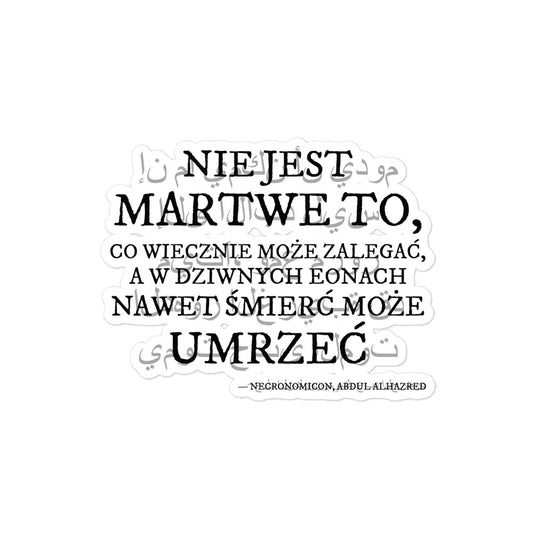 „Nie jest martwe…” – Cytat z Necronomiconu po arabsku i polsku Naklejki bez pęcherzyków powietrza